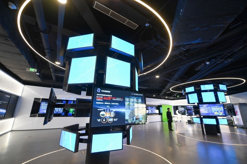 2024年2月5日拍攝的北京南中軸國際文化科技園數(shù)智創(chuàng)新中心展示廳。新華社記者 鞠煥宗 攝