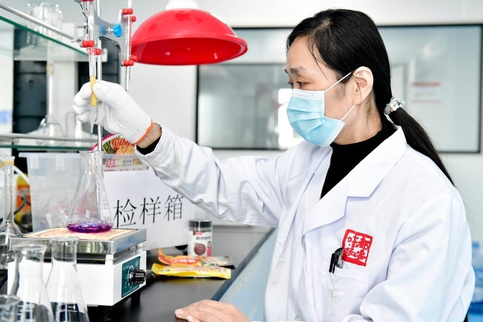 工作人員在樂陵市調(diào)味品產(chǎn)業(yè)共享實驗室對送樣調(diào)味品進(jìn)行檢測。新華社記者 郭緒雷 攝