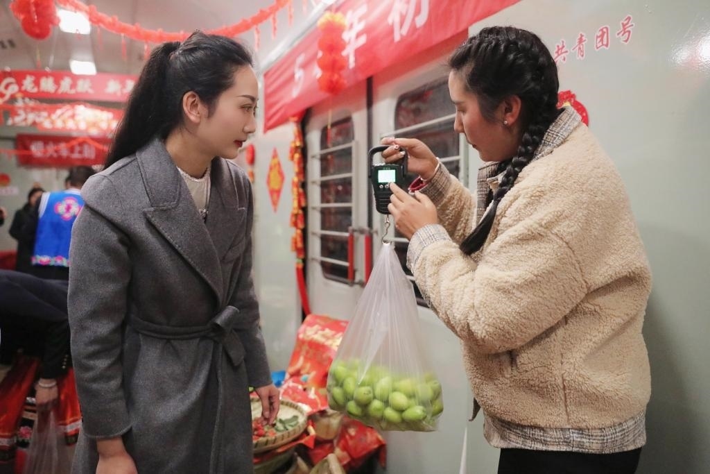 云南昆明至元謀西“慢火車”上的年貨街。(中國(guó)鐵路昆明局集團(tuán)有限公司供圖)