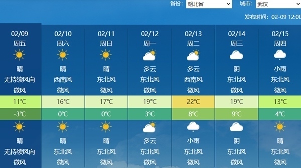 ↑看武漢未來四五天最高氣溫的過程升幅超10℃