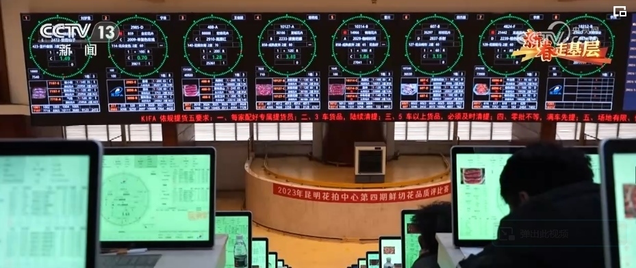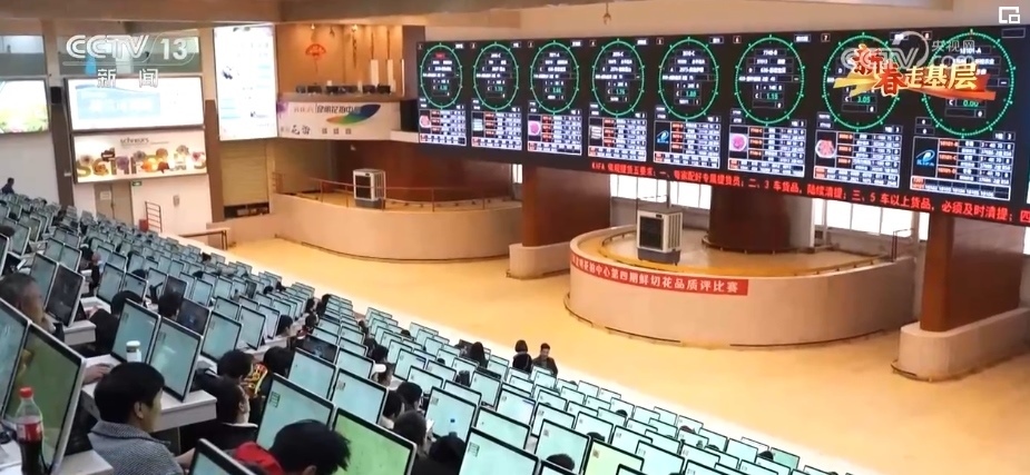 這里是昆明花卉拍賣交易中心,年交易量近25億枝,高峰期每天交易量1100多萬枝。這里的3000多位鮮花經(jīng)紀人,鏈接著3萬多家供貨商。這里的40多個品類,3000多個品種的鮮切花,市場遍及全球40多個國家和地區(qū)。這里的拍賣交易中心,平均每一筆花的交易時間不到4秒,但凡有點猶豫,就拍不到自己想要的花。