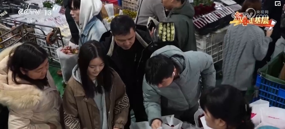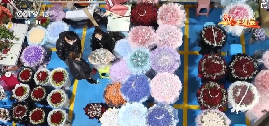 春節(jié)期間五彩繽紛、種類繁多的年宵花成為主角,玫瑰、臘梅、郁金香都是市場“寵兒”。這幾天,周琦他們的日訂單量已經(jīng)從2500單增加到3000多單。