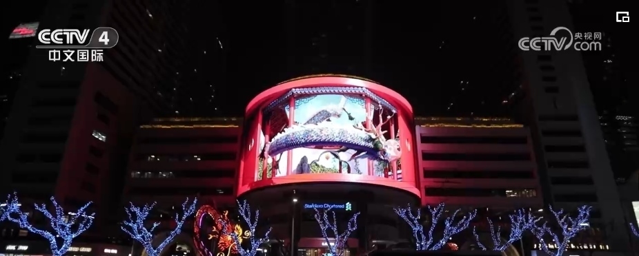 隨著夜幕降臨,在上海市南京西路這家商場(chǎng)戶外大屏,在裸眼3D技術(shù)的加持下,一條靈動(dòng)時(shí)尚的“光影巨龍”騰飛而出。同時(shí),上海南京西路商圈的多個(gè)地標(biāo)建筑,也開啟了春節(jié)燈光演繹。