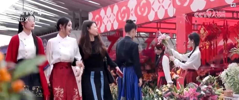 新春佳節(jié),添置一身新衣辭舊迎新,是很多人過年的儀式感。在廣東、福建等地街頭大大小小的“花市”上,馬面裙與五彩斑斕的鮮花相互映襯,成為龍年新春的一道亮麗風(fēng)景。