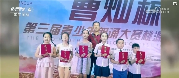 最初只有五名學生的朗誦團“沅水童聲”就這樣成立了。上課和朗讀,幾乎占據(jù)了郭云兵的全部時間,他買來教材、打卡各個平臺、總結(jié)朗讀技巧,他把舞臺從教室搬到操場上、沅水河邊,鼓勵大家勇于表達……在2017年的“曹燦杯”全國青少年朗誦大賽中,孩子們一路過關(guān)斬將殺進省賽,捧回3塊金牌。很多孩子變得越來越自信,也在成長中逐漸懂事,感受到父母的不易。