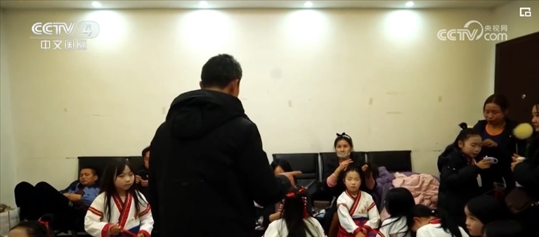 學生們要放寒假了,郭云兵的寒假計劃已經(jīng)排的滿滿當當,其中一項就是帶領(lǐng)朗誦團參加當?shù)厣賰捍和淼匿浿啤TS多新加入的成員還是第一次站上舞臺,上場前郭云兵給他們加油打氣。