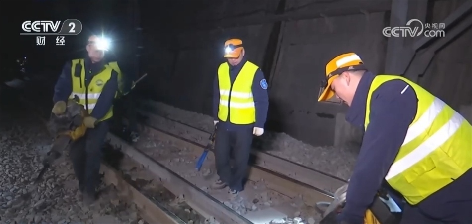 央視網(wǎng)消息:春運(yùn)期間,在襄渝鐵路川陜交界的巴山線路維修工區(qū),副工長(zhǎng)王庭虎和他的工友們正在加緊線路設(shè)備養(yǎng)護(hù)。春運(yùn)期間,他們的工作量是平常的3倍,忙碌的工作只為守護(hù)旅客的平安路。