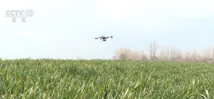 在河南安陽市滑縣,農(nóng)戶們也在忙著春季田間管理。在滑縣留固鎮(zhèn)李周村,植保無人機正在向連片小麥噴施葉面肥,促進小麥返青。