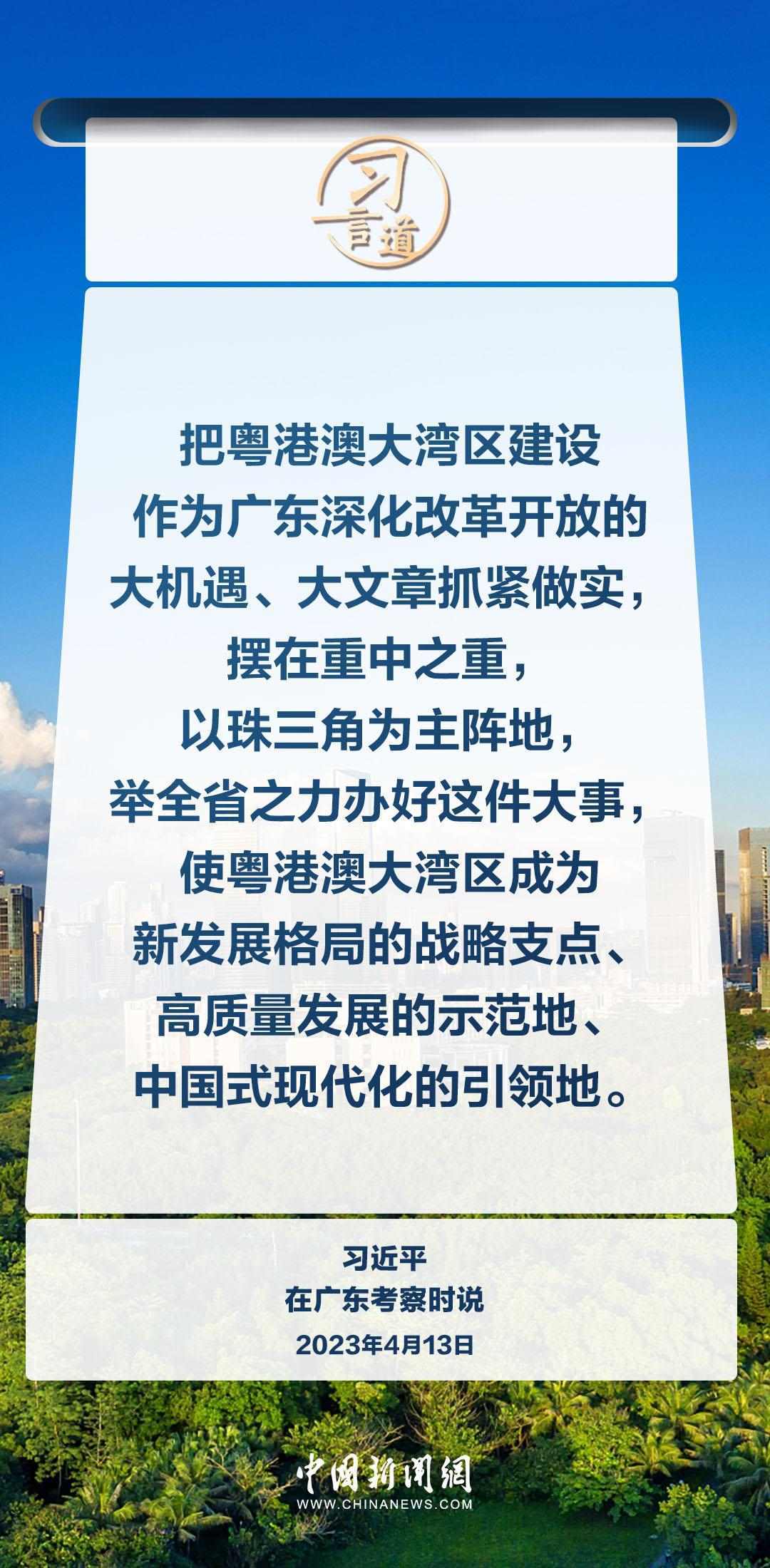 建設(shè)粵港澳大灣區(qū),是習(xí)近平總書(shū)記親自謀劃、親自部署、親自推動(dòng)的重大國(guó)家戰(zhàn)略。習(xí)近平在多個(gè)重大會(huì)議、重要場(chǎng)合對(duì)粵港澳大灣區(qū)建設(shè)作出重要指示、提出明確要求。