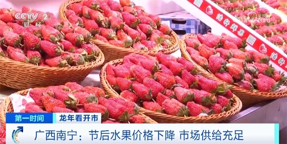 春節(jié)假期過后,在廣西南寧,記者走訪發(fā)現(xiàn)水果市場(chǎng)有所“降溫”,大家想要品嘗車?yán)遄?、草莓等水果正是好時(shí)機(jī)。