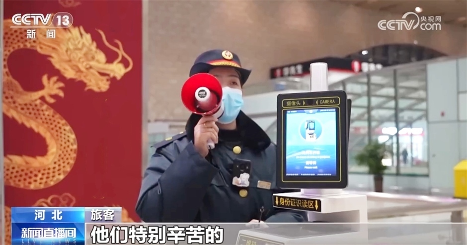 有旅客為工作人員點(diǎn)贊:“有你們的陪伴,我感覺(jué)好有安全感、好溫暖。他們特別辛苦,我們都能看得到,都是他們?cè)谀馗冻觯缓蟛庞辛宋覀兊哪托呐浜??!?/p>