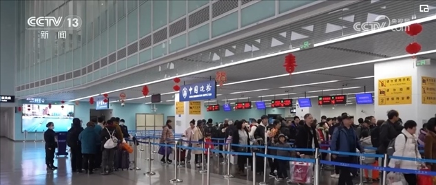 在吳淞口國(guó)際郵輪港T2航站樓邊檢查驗(yàn)大廳看到,一批批旅客在工作人員引導(dǎo)下有序排隊(duì)候檢。
