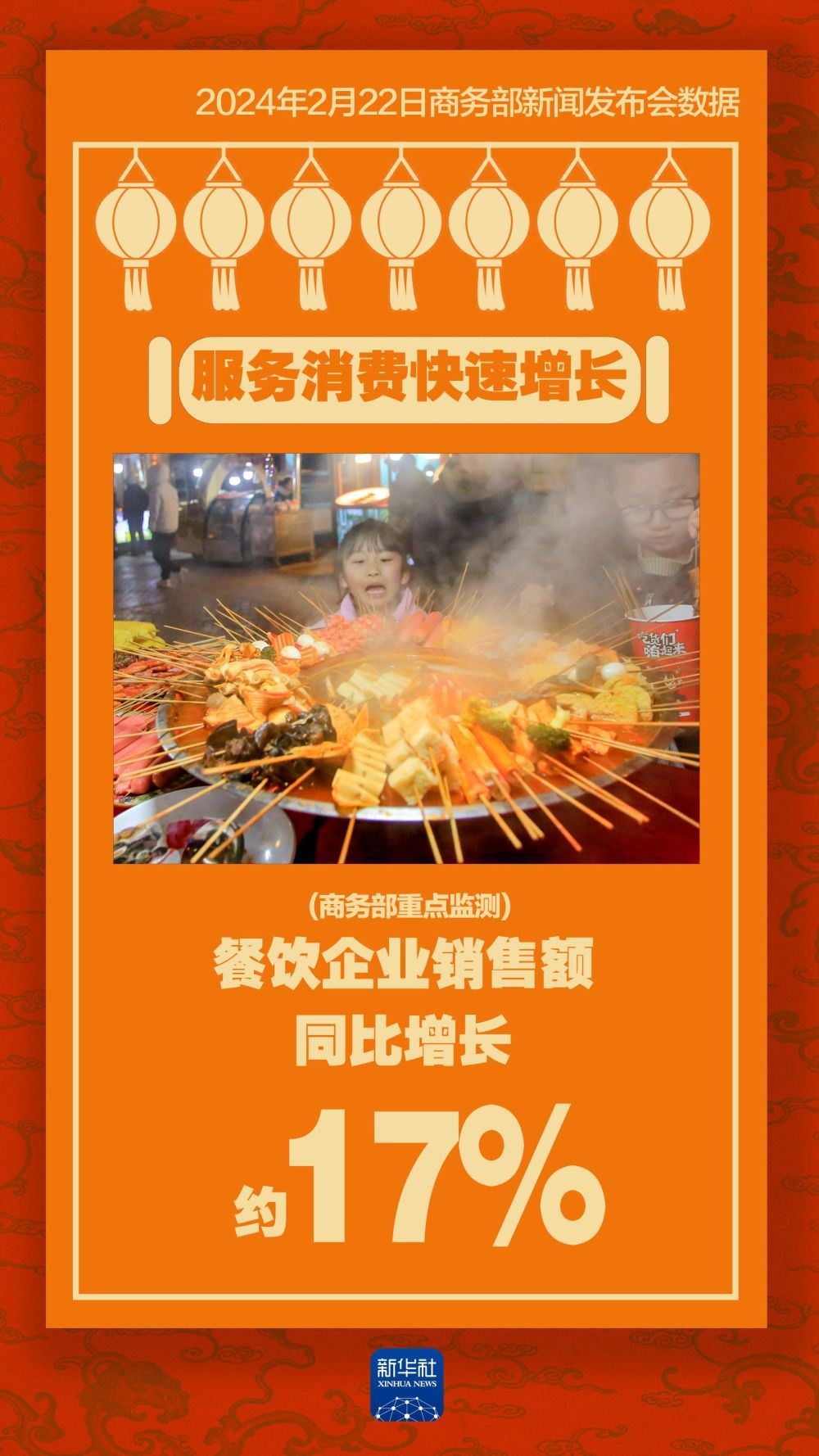 2月22日,商務部召開例行新聞發(fā)布會。商務部新聞發(fā)言人何亞東說,今年春節(jié)消費市場年味濃、活力足、人氣旺,銷售較快增長,實現良好開局。在新春消費旺季和各項政策措施帶動下,預計一季度消費市場將呈現平穩(wěn)增長態(tài)勢。
