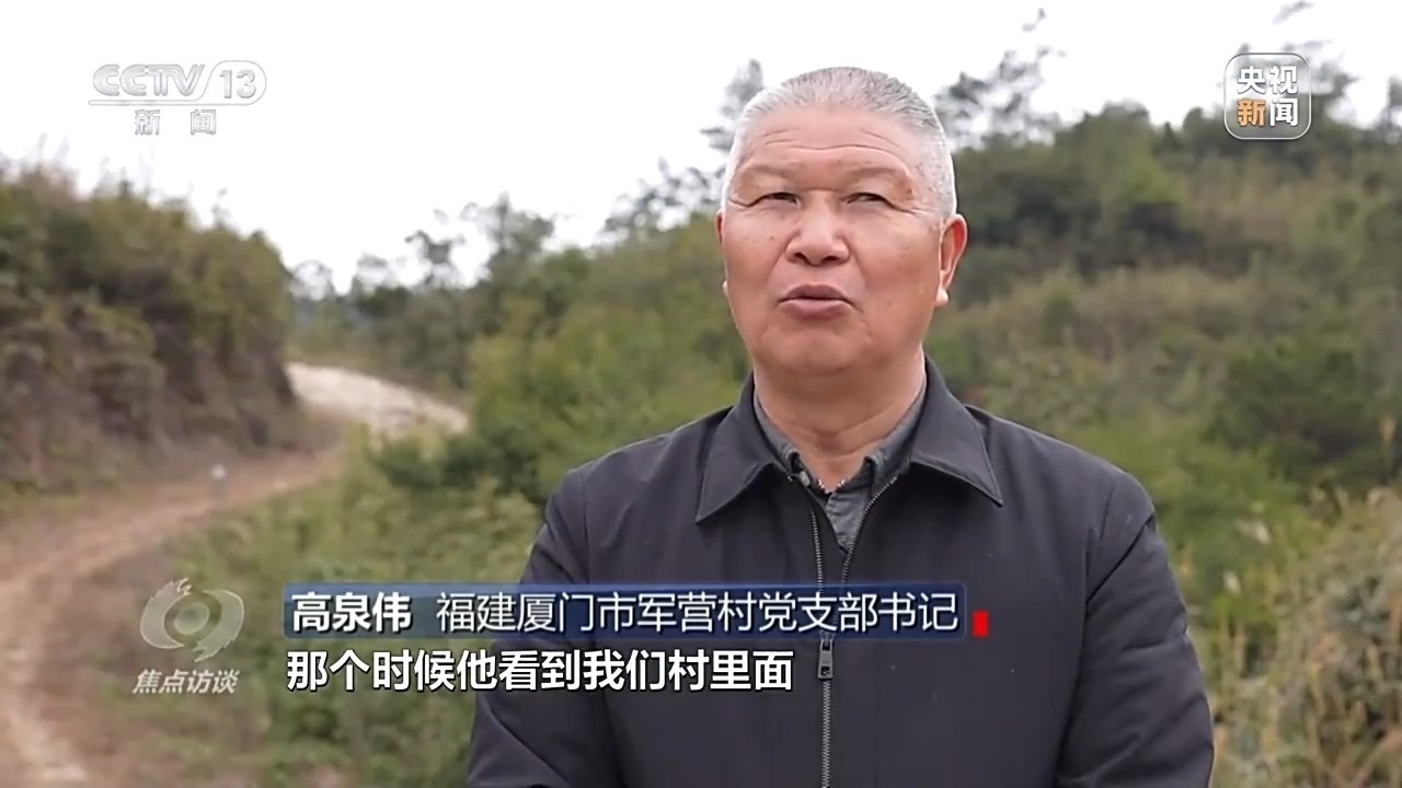 福建廈門市軍營村黨支部書記 高泉偉:“第一次講‘山上戴帽山下開發(fā)’,那時候他看到我們村里樹木都砍光了,連雜草也割回去當作肥料,其實是叫我們管好山管好水;第二次叫我們既要種茶種果,也別忘了森林綠化?!?/p>