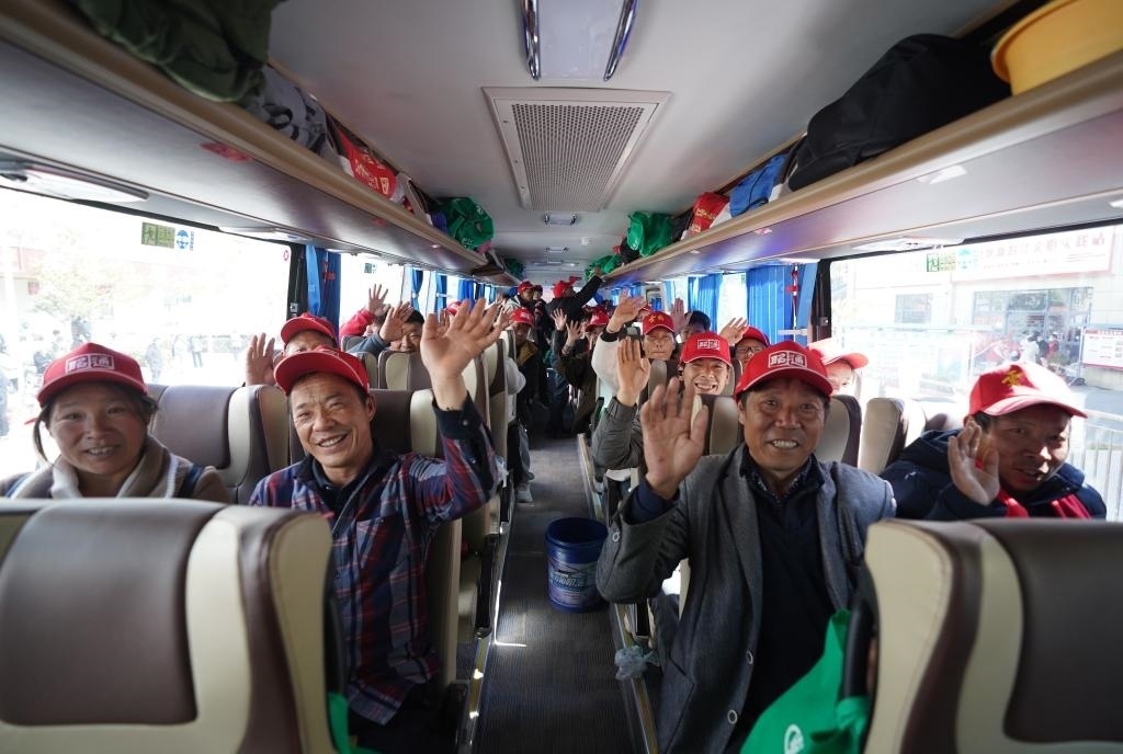 2月21日,在云南省昭通市的務工人員免費乘坐返崗直通大巴車前往福建、廣東、江蘇等地返崗就業(yè)。新華社發(fā)(梁志強攝)