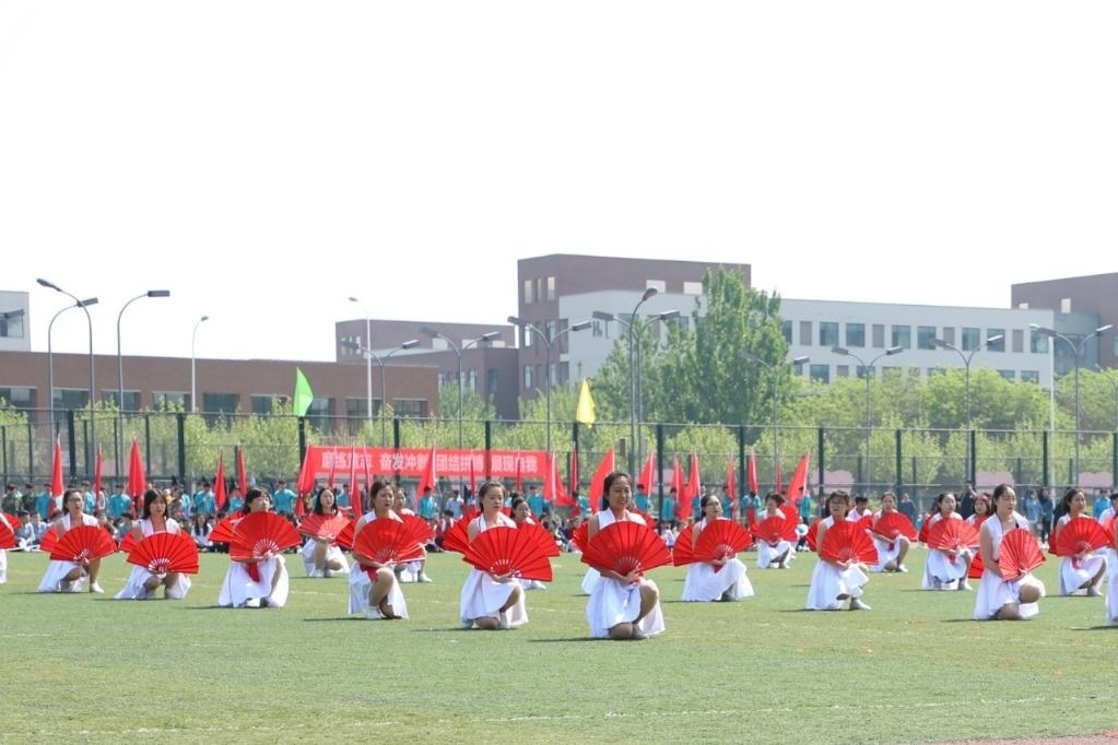 2019年4月26日,承德應用技術職業(yè)學院學生在天津中德應用技術大學運動會開幕式上表演。新華社發(fā)