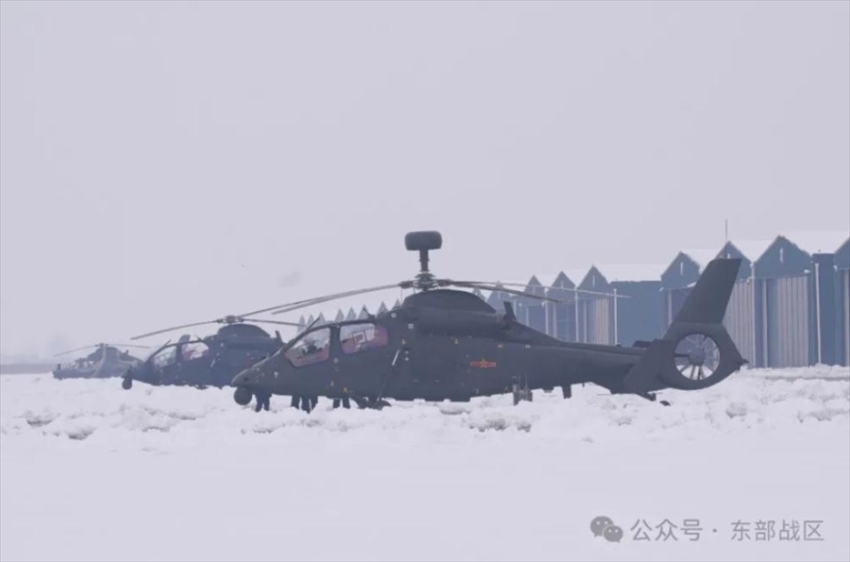 近日,第71集團(tuán)軍“江淮雄鷹”旅駐地降下春雪,面對(duì)嚴(yán)寒、低溫、積雪等復(fù)雜氣象條件,他們展開了一場(chǎng)多課目、多機(jī)型編隊(duì)雪地飛行訓(xùn)練。