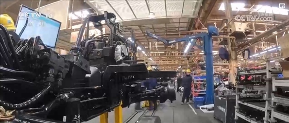 這是一個(gè)生產(chǎn)大拖拉機(jī)的農(nóng)機(jī)工廠(chǎng),更是一個(gè)具備國(guó)際領(lǐng)先水平的現(xiàn)代數(shù)字化項(xiàng)目區(qū)。在傳統(tǒng)的產(chǎn)業(yè)工人身邊多了“數(shù)字工友”一起干活。