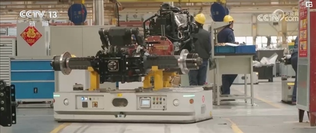 這是一部自動(dòng)化的AGV轉(zhuǎn)運(yùn)小車(chē),也叫做自動(dòng)搬運(yùn)機(jī)器人,它搬運(yùn)的可不是小零件,而是拖拉機(jī)底盤(pán)。這個(gè)環(huán)節(jié)如果靠人工轉(zhuǎn)運(yùn),費(fèi)時(shí)又費(fèi)力,如今在它的幫助下,幾秒鐘就可以完成。