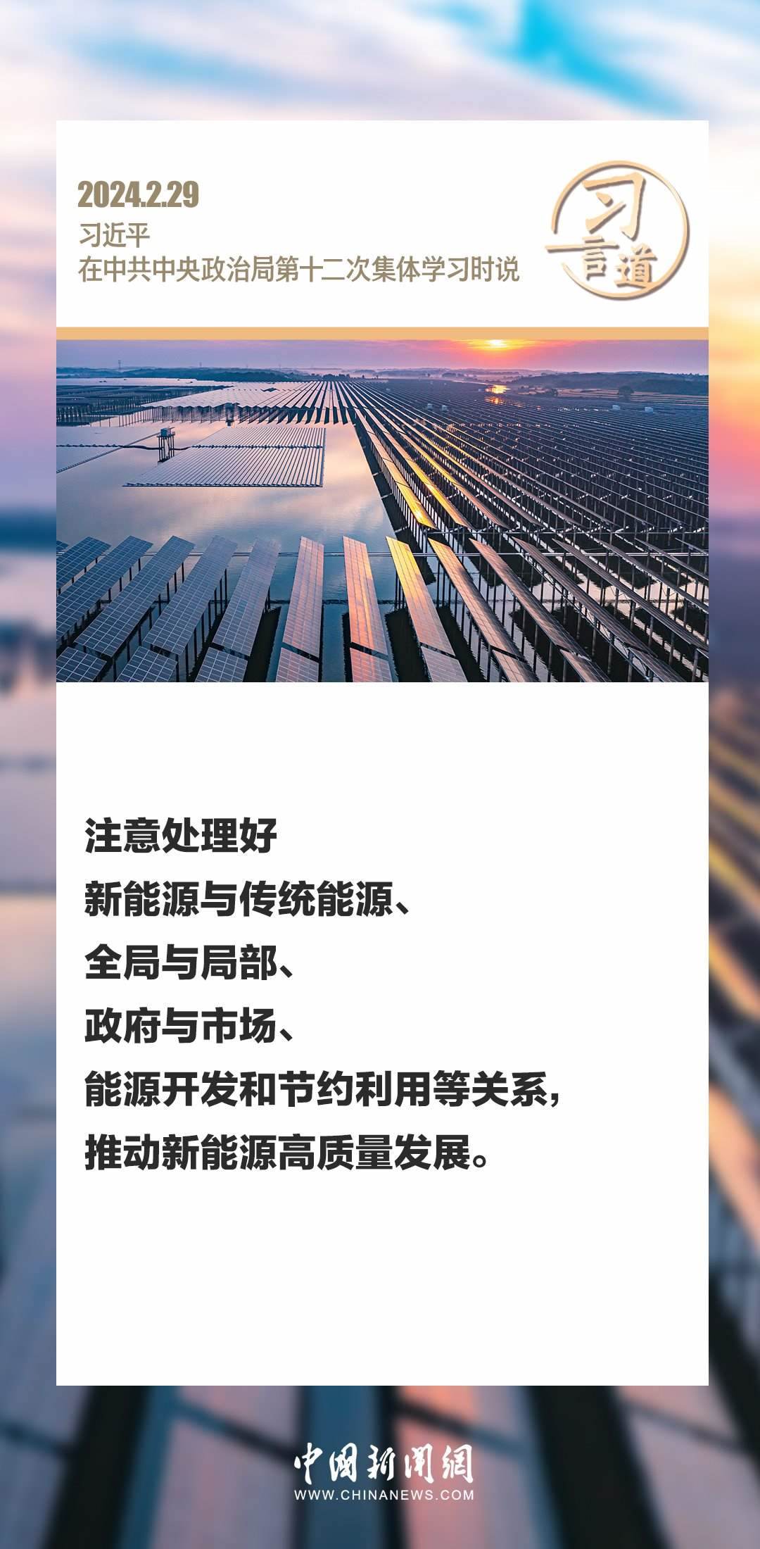 中共中央政治局2月29日下午就新能源技術(shù)與我國的能源安全進行第十二次集體學(xué)習(xí)。中共中央總書記習(xí)近平在主持學(xué)習(xí)時強調(diào)——