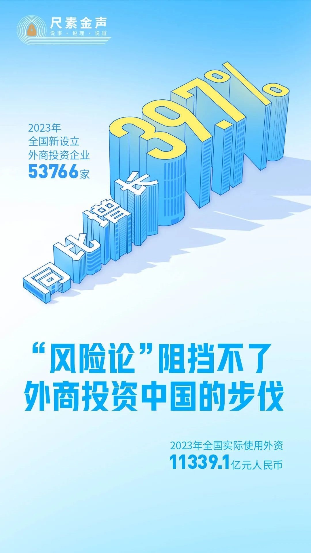 事實證明,任何抹黑誤導都阻擋不了外商來華投資步伐,中國制造展現(xiàn)出的強大韌性、活力和潛力,不會因花樣翻新的“唱衰”論調(diào)而改變。2023年,全國實際使用外資金額11339.1億元人民幣,仍處歷史高位;全國新設立外商投資企業(yè)53766家,同比增長39.7%。中國一直都是外商投資興業(yè)的沃土。