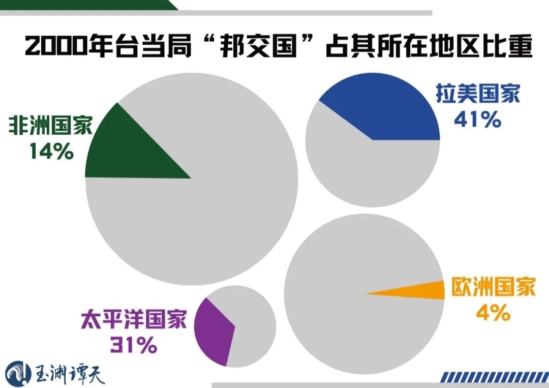 在2000年,臺灣當(dāng)局的“邦交國”僅覆蓋拉美、非洲、太平洋和歐洲四個(gè)區(qū)域。