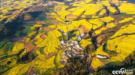2024年3月5日,云南曲靖,羅平縣馬街鎮(zhèn)鐵廠村委會野貓洞村,油菜花開春意濃,山間原野滿目金黃。
