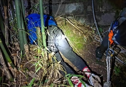 ·重慶一男子堵車尿急翻高速欄桿墜崖,所幸在一處陡坡被竹林絆住,最終被成功救上路面。