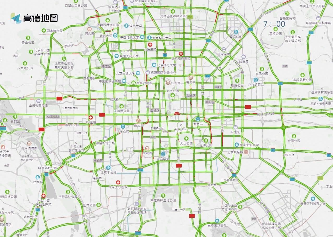 ? ? ? ?工作日白天時(shí)段,預(yù)計(jì)兒童醫(yī)院、兒研所、北京醫(yī)院、西苑醫(yī)院、復(fù)興醫(yī)院、北醫(yī)三院、同仁醫(yī)院、積水潭醫(yī)院等醫(yī)院門(mén)前及周邊道路車(chē)流量較大,高峰時(shí)段為7至13時(shí)。