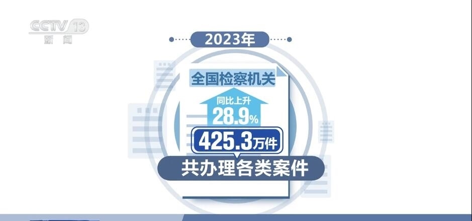 2023年,全國檢察機關共辦理各類案件425.3萬件,同比上升28.9%。