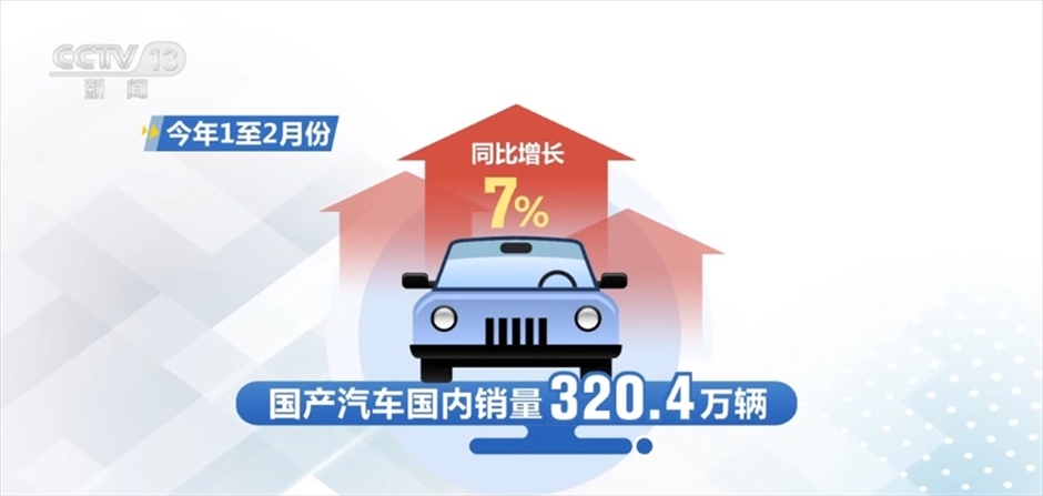 數(shù)據(jù)顯示,今年1至2月份,國產(chǎn)汽車國內銷量320.4萬輛,同比增長7%。其中,國產(chǎn)新能源汽車國內銷量102.5萬輛,同比增長34.3%。專家指出,從1至2月份運行情況看,汽車產(chǎn)銷的總體保持平穩(wěn),同比增速呈現(xiàn)較快的增長,預計全年增速將呈現(xiàn)前高后低的發(fā)展勢態(tài)。