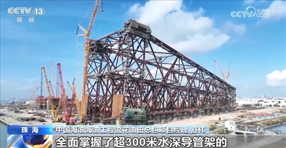 固定式導(dǎo)管架平臺是海洋油氣開發(fā)的關(guān)鍵裝備,由水下導(dǎo)管架、樁腿和水上的生產(chǎn)模塊三部分組成。導(dǎo)管架作為“地基”,支撐著整個海上油氣平臺的穩(wěn)定與安全?!昂;枴?導(dǎo)管架總高338.5米,總重達(dá)37000噸,用鋼量接近“鳥巢”國家體育場。由于其所處海域臺風(fēng)頻發(fā),風(fēng)浪及內(nèi)波流極為強(qiáng)烈,因此該導(dǎo)管架是按照百年一遇的惡劣海況進(jìn)行設(shè)計。