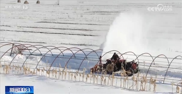 在黑龍江哈爾濱市延壽縣,種植戶正在搶抓天氣回暖有利時機(jī)開展清雪扣棚工作。
