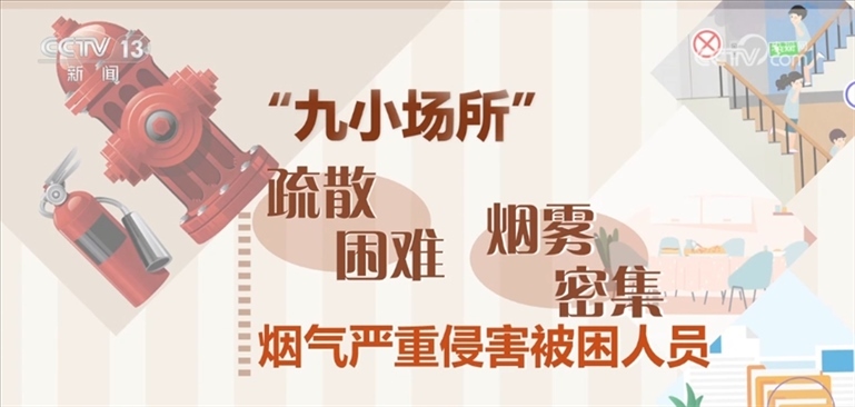 “九小場(chǎng)所”是指建筑面積在300平方米以下的小商場(chǎng)、額定就餐人數(shù)100人以下的小飯店、床位數(shù)50張以下的小旅館,以及小型的公共娛樂、休閑健身、醫(yī)療、教學(xué)、生產(chǎn)加工、易燃易爆危險(xiǎn)品銷售儲(chǔ)存等場(chǎng)所?!熬判?chǎng)所”一旦出現(xiàn)火災(zāi),容易形成大面積燃燒。通常,“九小場(chǎng)所”疏散困難、煙霧密集,煙氣嚴(yán)重侵害被困人員。同時(shí),水源缺乏、滅火救援難度大,極易造成人員傷亡。