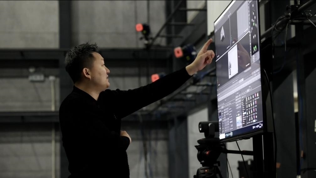“這是動作數(shù)字孿生,利用光學(xué)動捕技術(shù),棚內(nèi)多個專業(yè)攝像頭捕捉演員身上的特定標(biāo)記,以毫秒級的速率計算出角色的運動軌跡,然后將數(shù)據(jù)傳送到電腦上,實現(xiàn)虛擬人物的動作。”國家動漫園公共技術(shù)服務(wù)平臺動捕棚的技術(shù)顧問崔盛輯向記者介紹道。