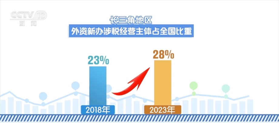 此外,長(zhǎng)三角地區(qū)不斷擴(kuò)大制度性開放水平,推動(dòng)構(gòu)建優(yōu)良營(yíng)商環(huán)境,在吸引外資方面保持優(yōu)勢(shì)。稅收數(shù)據(jù)顯示,長(zhǎng)三角地區(qū)外資新辦涉稅經(jīng)營(yíng)主體占全國(guó)比重由2018年的23%提升至2023年的28%。其中,2019—2023年,吸引共建“一帶一路”國(guó)家來長(zhǎng)三角投資主體超過8600戶,占共建“一帶一路”國(guó)家來我國(guó)投資涉稅經(jīng)營(yíng)主體數(shù)量近50%。