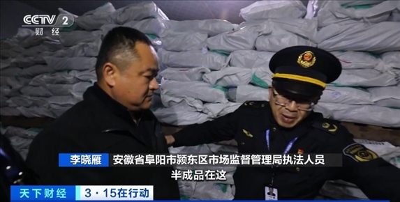 總臺(tái)央視記者 李雪峰:我所在位置是安徽阜陽潁東區(qū)。我身后就是被“3·15”晚會(huì)曝光的安徽廚先生食品有限公司,現(xiàn)場(chǎng)已經(jīng)有大批的執(zhí)法人員抵達(dá)了這里,對(duì)這家企業(yè)進(jìn)行查處。