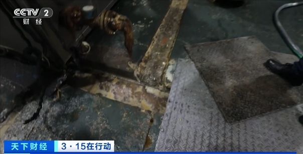總臺(tái)央視記者 李雪峰:在企業(yè)的生產(chǎn)車間里,可以看到環(huán)境是十分惡劣。地面上污水橫流,夾雜著油污的水順著水渠一直涌向了地溝,生產(chǎn)車間里設(shè)備已是銹跡斑斑。