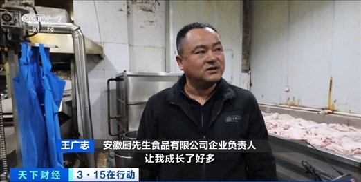 安徽廚先生食品有限公司企業(yè)負(fù)責(zé)人 王廣志:經(jīng)過這個(gè)曝光,讓我成長(zhǎng)了好多,咱們做食品,民以食為天,要重視質(zhì)量。