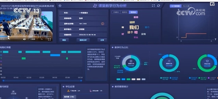在河北保定競(jìng)秀學(xué)校,一套新引進(jìn)的智慧教學(xué)研一體化系統(tǒng)正在推行。教室里,兩臺(tái)智能攝像機(jī)對(duì)課堂情況進(jìn)行視頻采集,包括高頻詞、師生互動(dòng)、講課語(yǔ)速等元素,通過(guò)AI技術(shù)生成課堂大數(shù)據(jù)分析報(bào)告,對(duì)于改進(jìn)教學(xué)方法起到意想不到的效果。