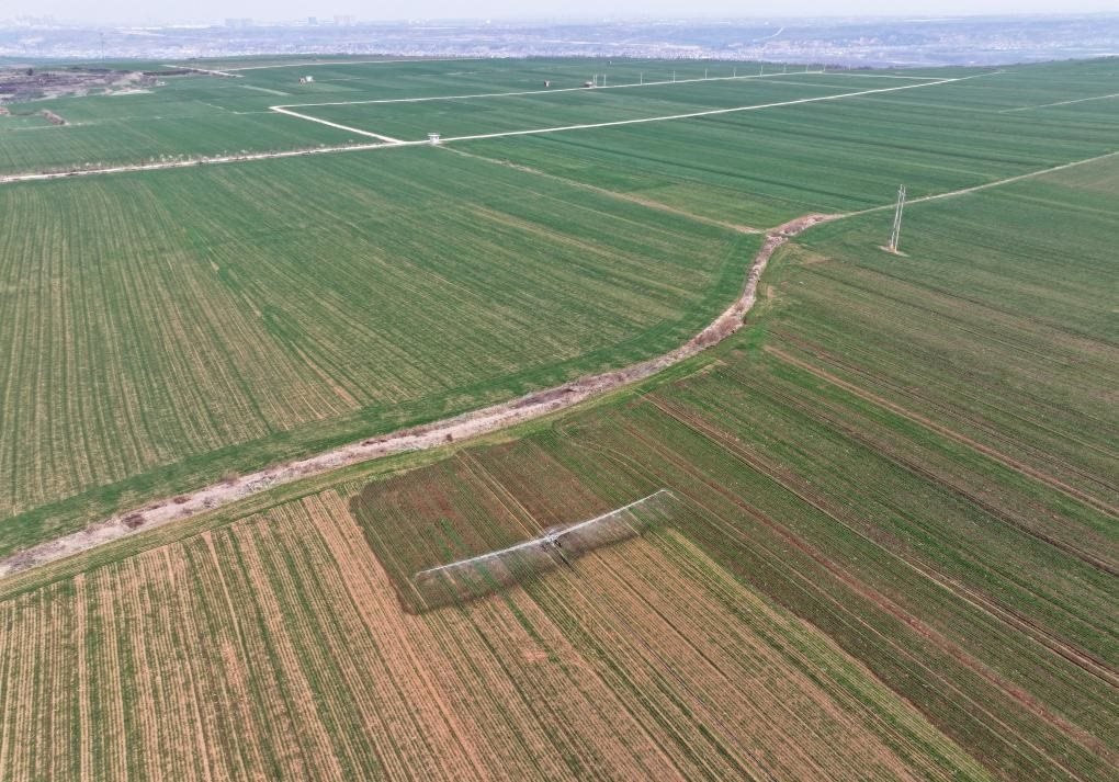 長(zhǎng)安區(qū)神禾塬萬(wàn)畝優(yōu)質(zhì)糧食生產(chǎn)基地,位于秦嶺腳下一片百米高的臺(tái)塬之上,長(zhǎng)期以來(lái)沒(méi)有灌溉條件,小麥種植只能“靠天吃飯”。今年春天,這片旱塬地不但澆上了水,灌溉使用的還是高效節(jié)水的淋灌機(jī)。