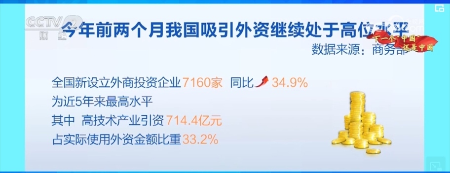 朱亞明是安永中國多項核心業(yè)務的主管合伙人。在他看來,世界經(jīng)濟增長乏力之際,外商依然保持來華投資的熱情。根據(jù)商務部的最新數(shù)據(jù),2024年前兩個月,全國新設立外商投資企業(yè)7160家,同比增長34.9%,為近5年來最高水平,其中,高技術產(chǎn)業(yè)引資714.4億元,占實際使用外資金額比重為33.2%。朱亞明指出,中國實際使用外資規(guī)模仍處于歷史高位、投資結構繼續(xù)優(yōu)化,外商持續(xù)看好投資中國的前景。