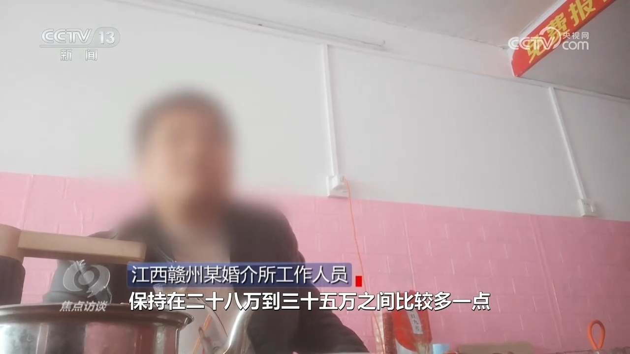 江西贛州某婚介所工作人員:“我們這邊彩禮有點(diǎn)偏貴,保持在二十八萬(wàn)到三十五萬(wàn)之間,最多的彩禮三十八萬(wàn)?!?/p>