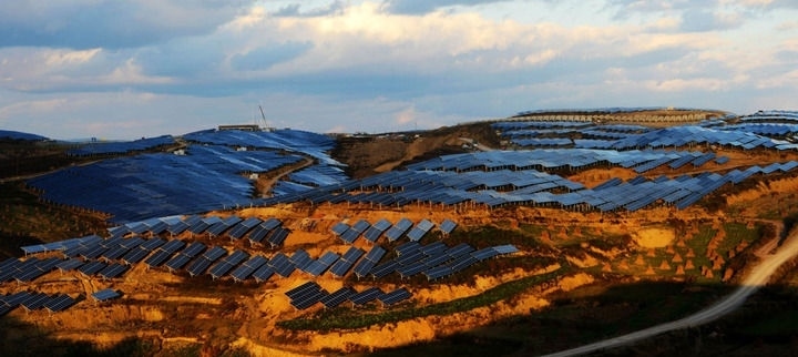 在昆明市石林縣北大村,由23萬塊光伏板組成的56個(gè)光伏發(fā)電方陣形成一道獨(dú)特景觀。由國家電投云南國際電力投資有限公司建設(shè)的這個(gè)光伏電站,年發(fā)綠色電能達(dá)7800萬度。