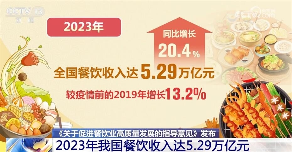 2023年我國餐飲收入達(dá)5.29萬億元,同比增長20.4%。那么,國家為什么在此時(shí)出臺(tái)促進(jìn)餐飲業(yè)高質(zhì)量發(fā)展的指導(dǎo)意見?餐飲業(yè)如何實(shí)現(xiàn)高質(zhì)量發(fā)展?目前面臨哪些問題?來看專家的解讀。?