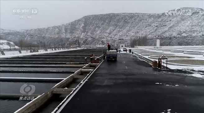 這里是太行山深處的山西晉城市沁水縣鄭莊鎮(zhèn)張峰村,村民們正在忙著喂魚、分魚池。也許有人會(huì)有疑問,山西省水資源并不豐富,張峰村又身處太行山深處,怎么想到要養(yǎng)殖三文魚呢?原來,三文魚養(yǎng)殖對(duì)水質(zhì)的要求很高,必須是活水。張峰村養(yǎng)三文魚的水域?qū)儆诖笊缴钐幍那吆?,水質(zhì)清澈、富氧,水溫適宜,正是三文魚養(yǎng)殖的理想之地。
