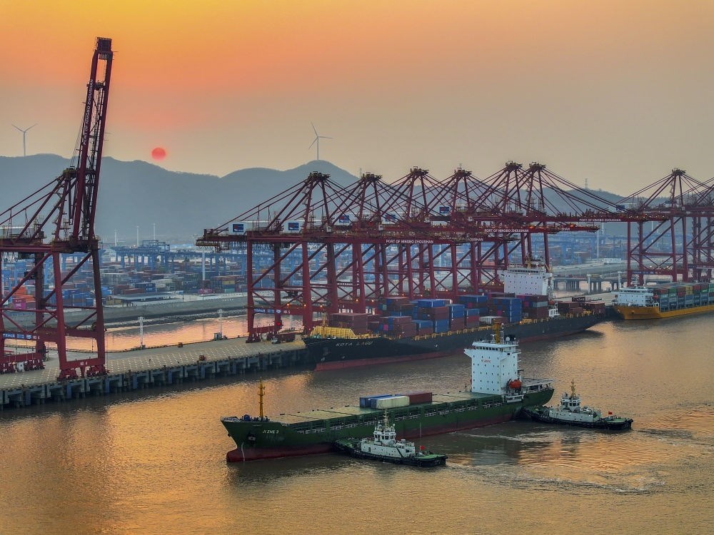 浙江寧波舟山港金塘港區(qū)碼頭作業(yè)繁忙(2024年2月11日攝,無人機照片)。新華社發(fā)(姚峰 攝)