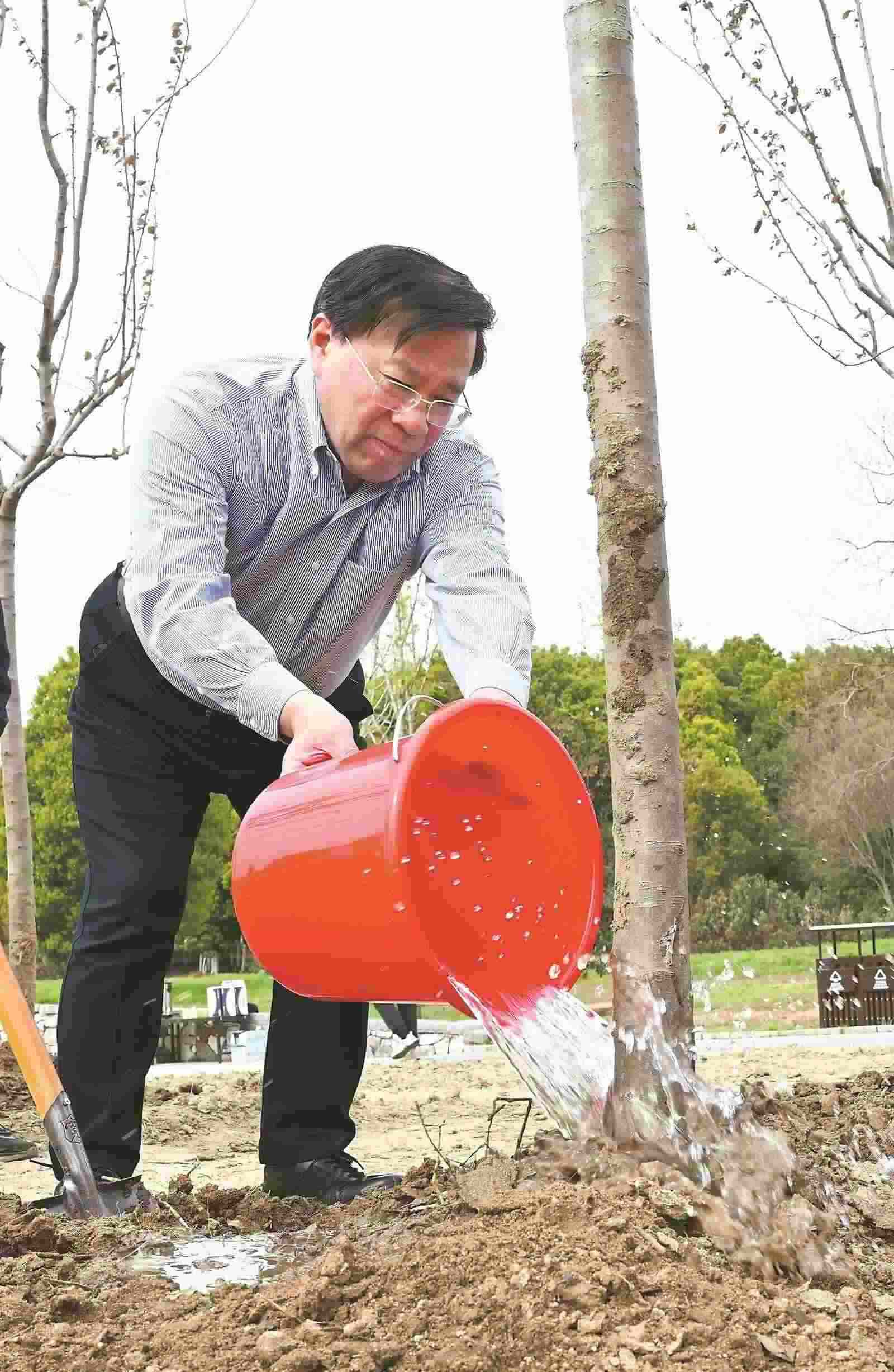 隨后,韓俊等安徽省領導拿起鐵鍬走向植樹地點,同現(xiàn)場的干部群眾一起,將一棵棵樹苗植入樹坑。大家揮鍬鏟土、培土圍堰、提水澆灌,經過一番忙碌,一排排新栽下的廣玉蘭、桂花、紫薇、海棠等樹種,在和煦的春風中昂然挺立,孕育著勃勃生機,煥發(fā)出綠色希望。植樹過程中,韓俊對植樹造林工作提出明確要求。他說,植樹造林功在當代、利在千秋。要扎實開展全民義務植樹,合理優(yōu)化國土綠化格局,持續(xù)提高造林綠化質量,鞏固和增強生態(tài)系統(tǒng)碳匯能力,不斷提升生態(tài)系統(tǒng)多樣性、穩(wěn)定性、持續(xù)性,切實把好山好水保護好。各級領導干部要帶頭抓好國土綠化和生態(tài)文明建設各項工作,大力營造愛綠、植綠、護綠的文明風尚,帶動更多干部群眾爭做生態(tài)文明建設的實踐者、推動者,共同種出屬于大家的綠水青山和金山銀山,繪出人與自然和諧共生的美麗安徽新畫卷。