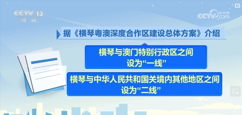 據(jù)《橫琴粵澳深度合作區(qū)建設(shè)總體方案》介紹,珠海橫琴與澳門(mén)特別行政區(qū)之間設(shè)為“一線”,橫琴與中華人民共和國(guó)關(guān)境內(nèi)其他地區(qū)之間設(shè)為“二線”。