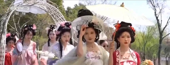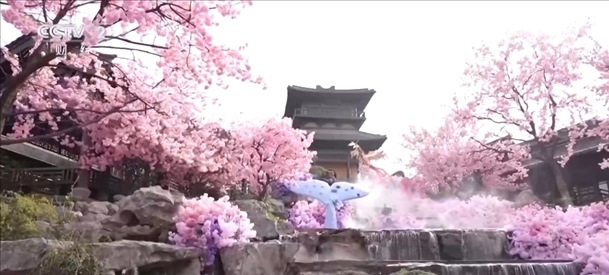 在江蘇常州,百萬株郁金香競(jìng)相開放。櫻花、玉蘭、垂絲海棠等花木也開滿山谷,一簇簇粉白的花朵隨微風(fēng)搖曳,宛若世外桃源。伴著音樂,十二花神身著漢服踏春而來,構(gòu)成本次花朝節(jié)一道亮麗的風(fēng)景線。